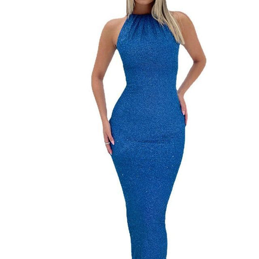 Sleeveless High Neck Glitter Maxi Bodycon Dress CG22