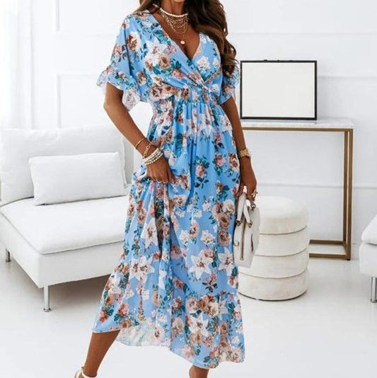 Short-Sleeve Floral Maxi A-Line Dress YS10020