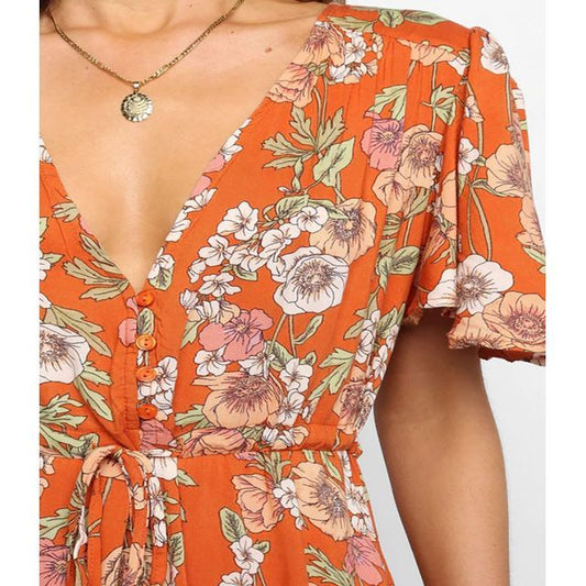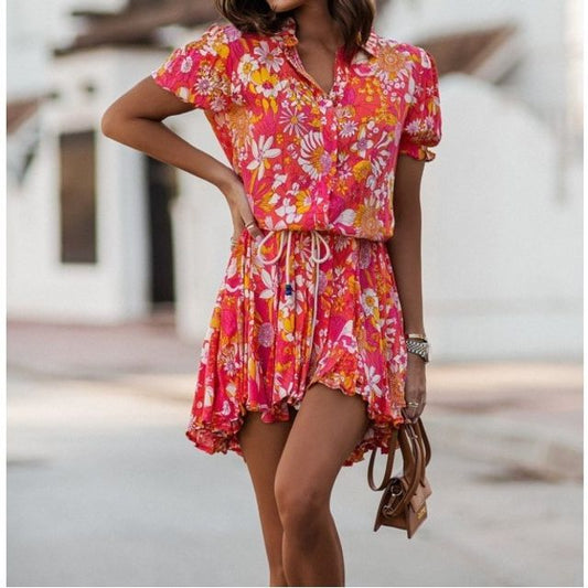 Short-Sleeve Floral Mini Shirt Dress YS10015
