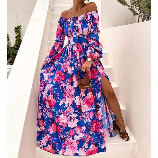 Off-Shoulder Floral Print Midi A-Line Dress YS10018