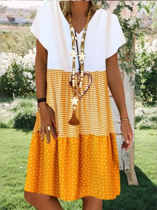 Women Daytime Boho V-Neck Printed Paneled Dress NNq37