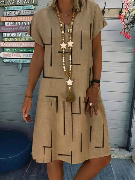 Cotton Plain V Neck Casual Boho Dress NNq2