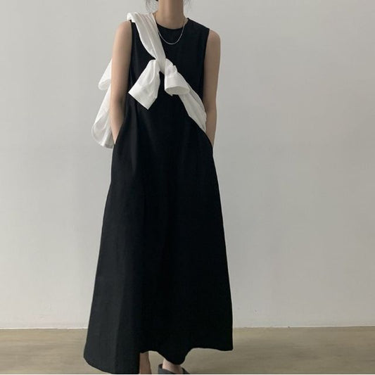 Sleeveless Crew Neck Plain Maxi A-Line Dress AO6032