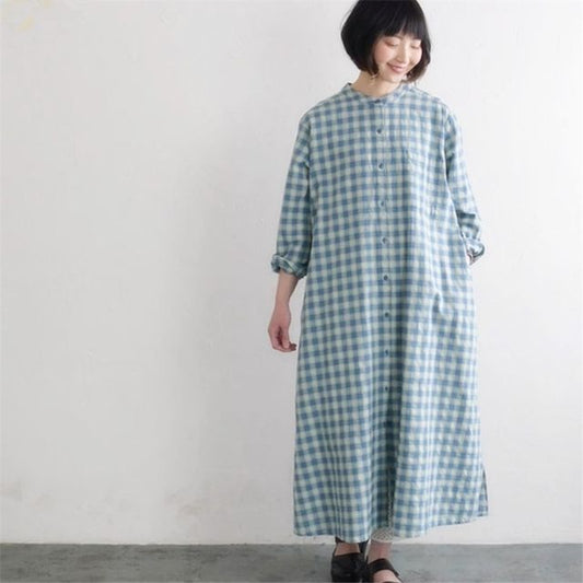 Long-Sleeve Plaid Maxi Shirt Dress AO6033