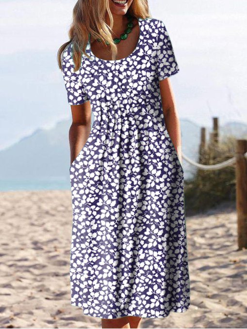 Regular Fit Crew Neck Floral Casual Dress MMu11