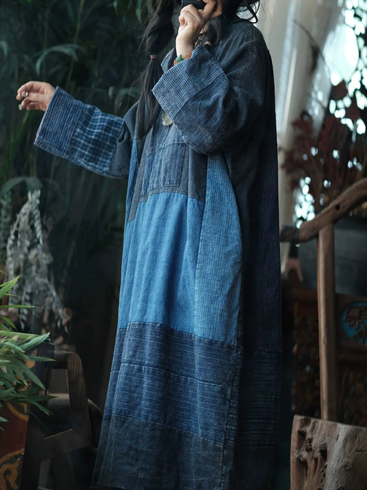 Retro Patchwork O-Neck Dress Women Cotton Autumn