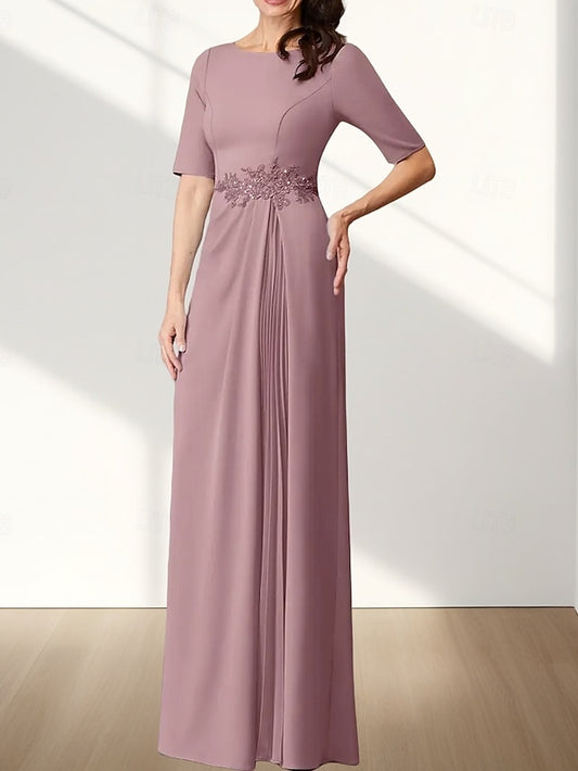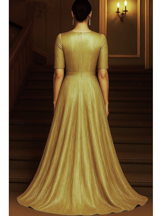 Mother Elegant Bride Crew of Floor Neck the A-Line Dress Vintage