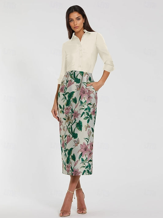 Dress Floral Jacquard Cocktail Column Brocade Dresses Elegant