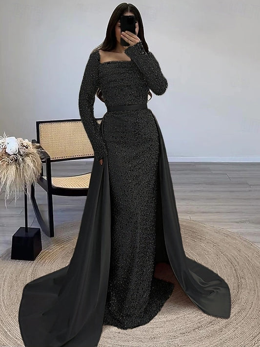 Dress Evening Sequin A-Line Gown Elegant Guest Formal Wedding