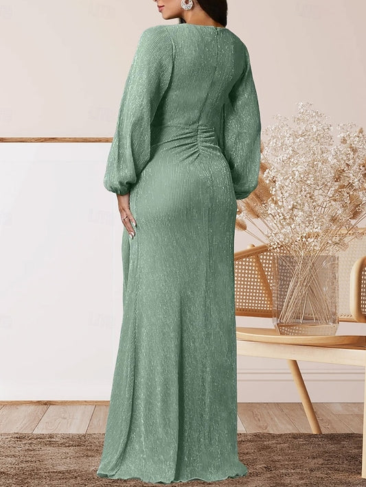V Dress the Bride Mother Neck Party Elegant Floor of