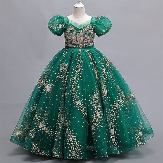 Kids Girls' Sleeve Color Solid Dress Party Short