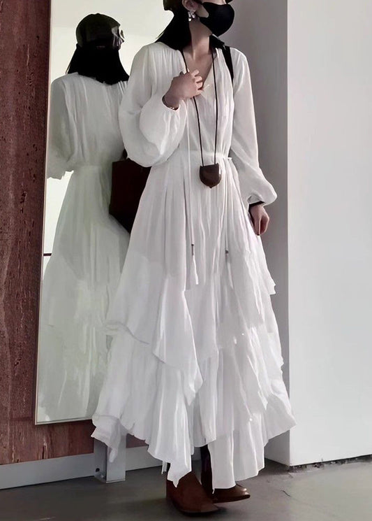 Pockets V Long Two Neck Summer Cotton White Pieces Dress False