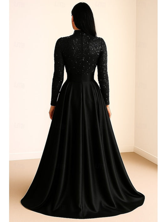 Carnival Formal Dress Sequined Elegant A-Line Black Gown Evening