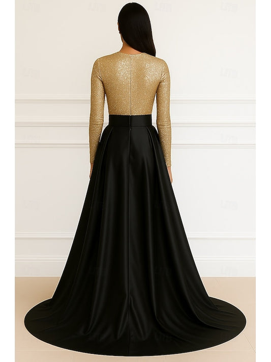 A-Line Dress Black Wedding Elegant Formal Gown Gold Evening