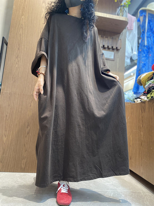 Casual Color Pure Women Dress O-Neck Cotton Maxi Summer
