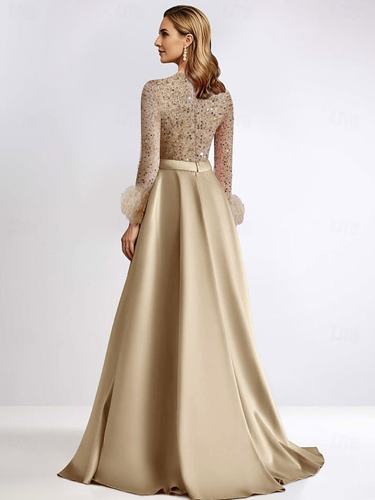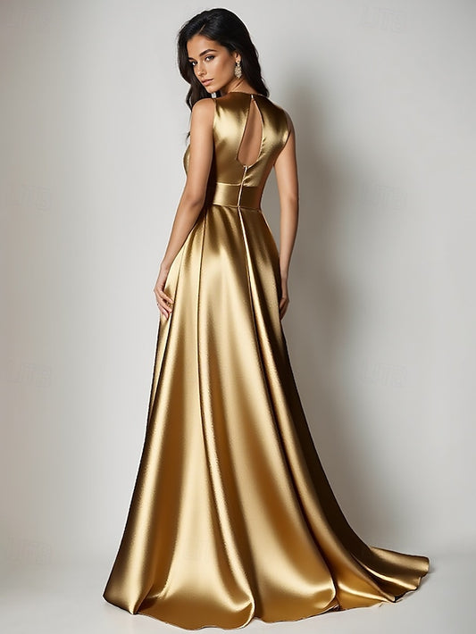 Gold A-Line Gown Formal Floor Wedding Evening Dress Elegant