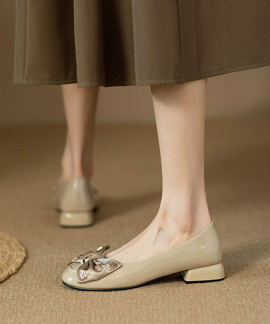 French Beige Splicing Chunky Heel Loafers For Women QK050