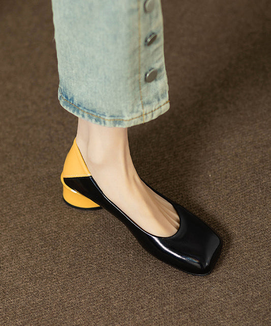 Black Splicing Chunky Heel Cowhide Leather Penny Loafers AP1005