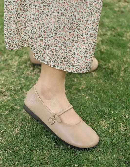 Front Strap Round Head Leather Flats