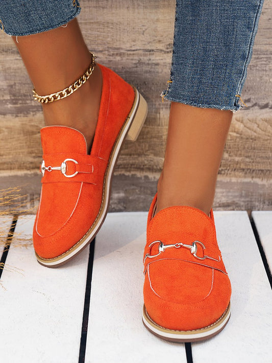 Metal Decor Faux Suede Casual Loafers QAS52