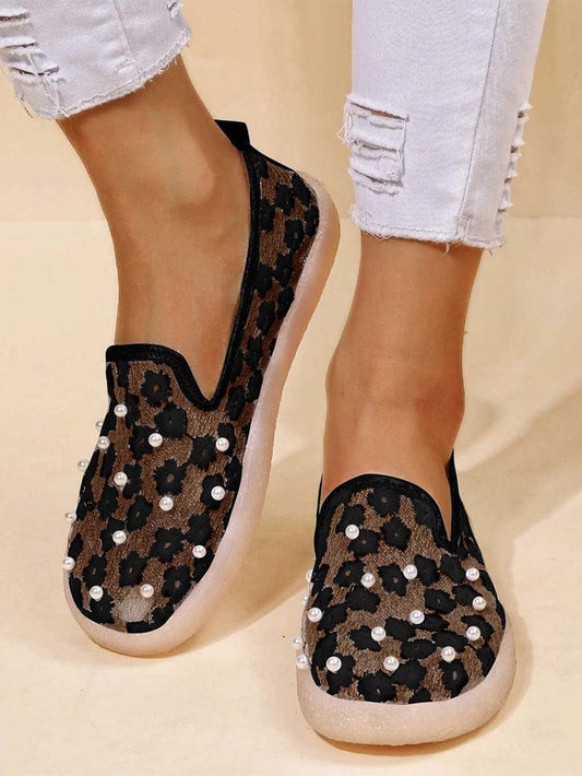 Elegant Embroidery Lace Pearl Decor Breathable Flats Shoes DD53