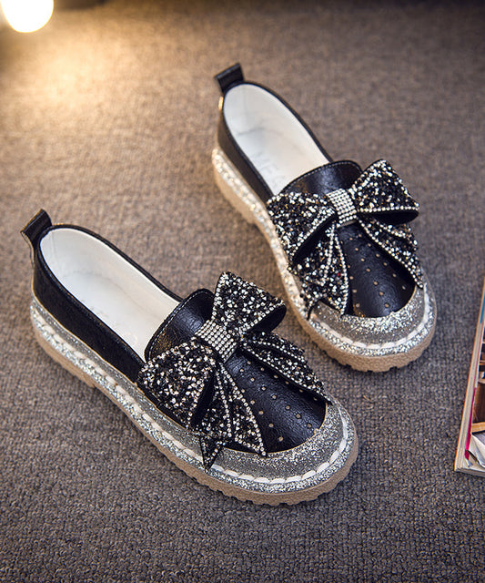 Penny Suede Comfy Loafers Splicing Zircon Black Bow
