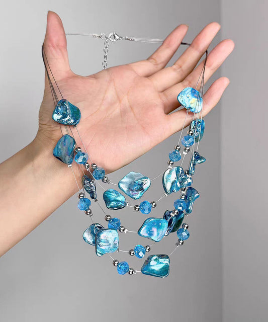 Asymmetrical Pendant Necklace Tassel Brief Blue Planchet Alloy