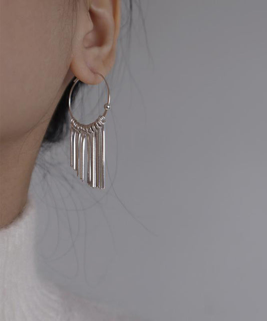 Tassel Waterfall Silk 925 Brief Hoop Earrings Silver