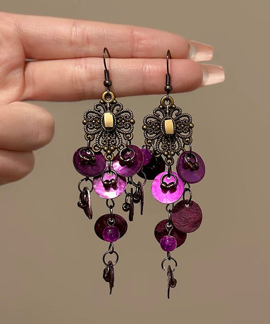 Original Design Drop Silk Copper Disc Earrings Tassel Wavy
