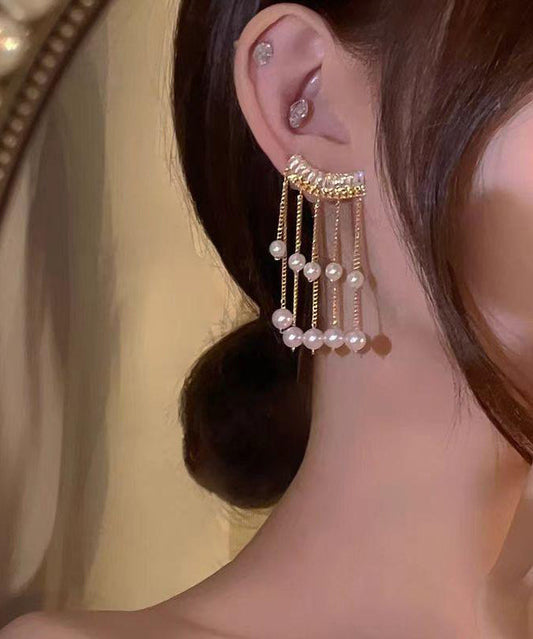 Pearl Gold Drop Copper Earrings Fashion Overgild Tassel