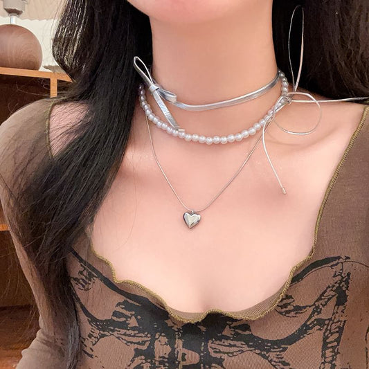 Double-Layer Bead Gratuated Pearl Necklace Tiger's-Eye Copper New