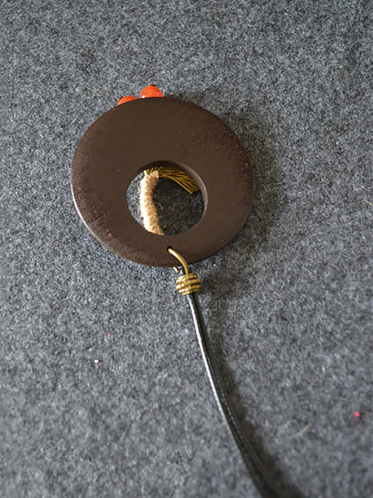 Women Alloy Leaf Round Wooden Sweater Necklace KL1042