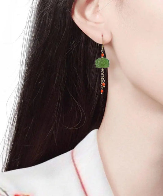 Women Jade Enamel Alloy Tassel Earrings