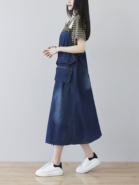 Women Autumn Retro Patchwork Denim Pocket Jumpsuits AI1048