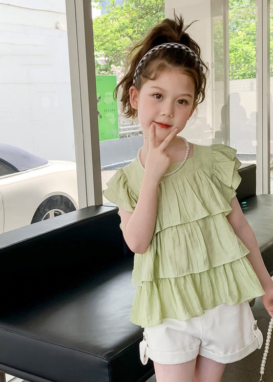 Lovely Light Yellow Ruffled Patchwork Wrinkled Kids Shirt Lantern Sleeve SS1008