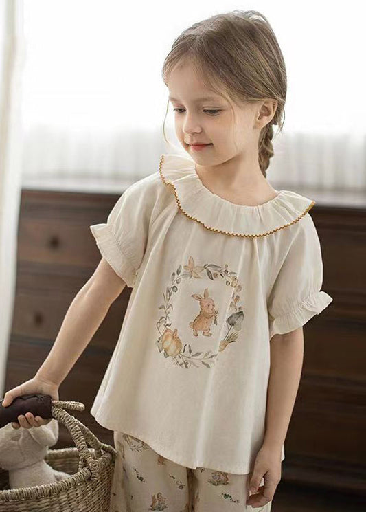 Elegant Apricot Print Kids Girls Shirt Puff Sleeve SS1028