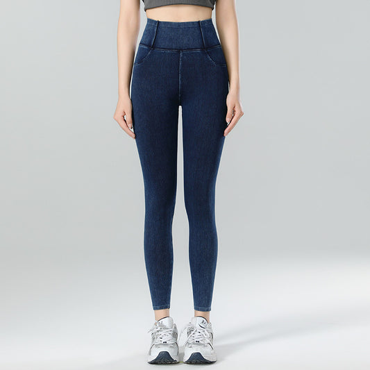 High Waist Elastic Plain Washed Denim Leggings QK102