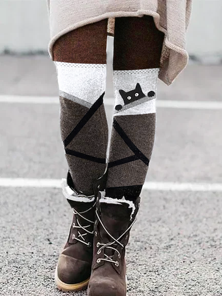 Women Casual Autumn Cat Micro-Elasticity Daily Regular Fit Elastic Band Regular Regular Size Leggings AH727