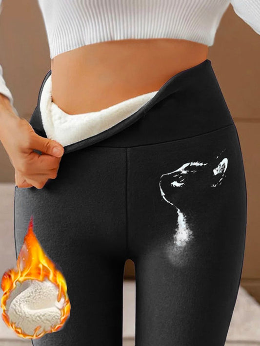 Casual Fluff/Granular Fleece Fabric Cat Loose Leggings BB62
