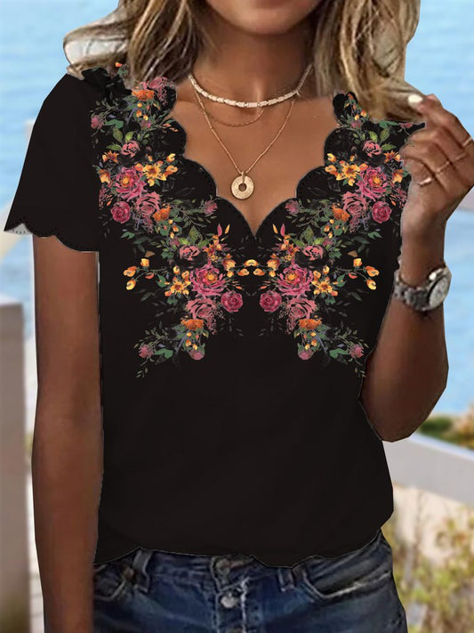 Casual Floral Jersey Lace Collar Shirt WG63