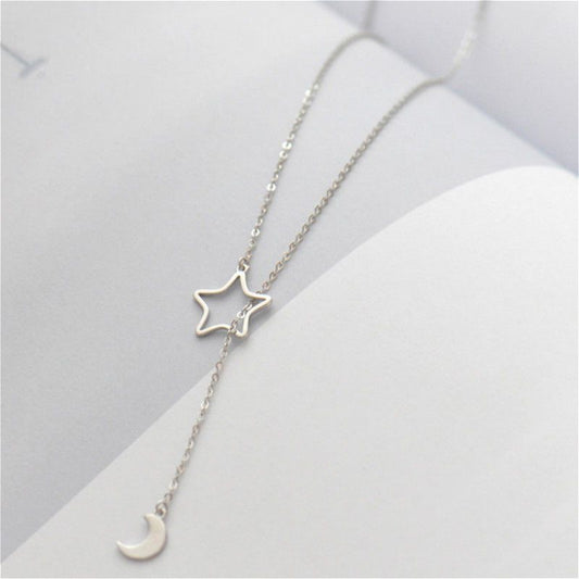 Silver Moon and Sterling Pendant 925 Necklace Star