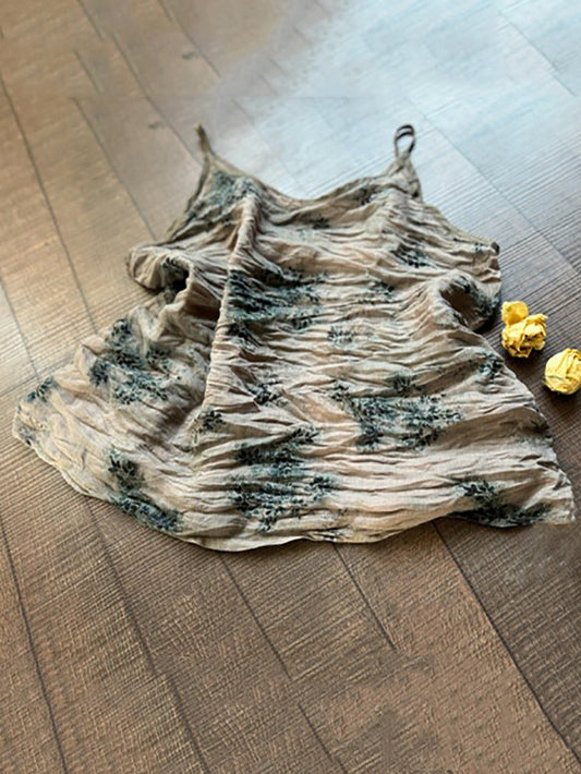 Women Summer Tie-dye Raw-edge Linen Vest CV1031
