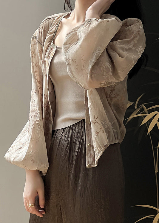 Loose Beige O-Neck Button Long UPF 50+ Coat Long Sleeve VB1049