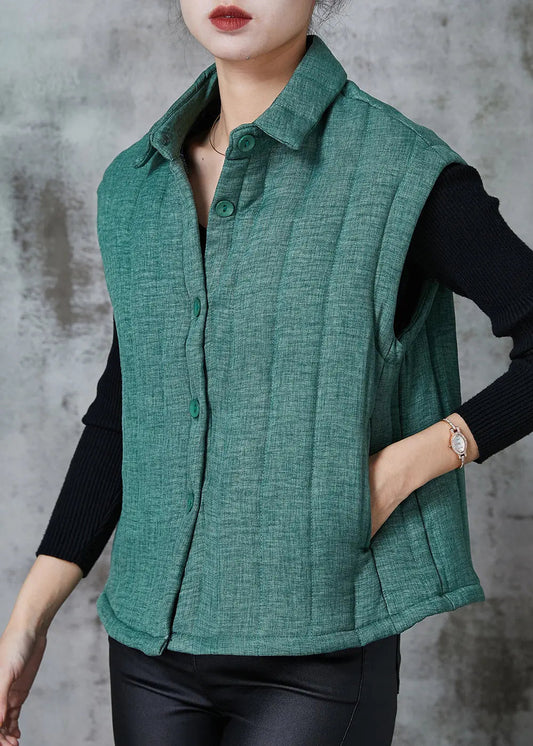 Green Thick Fine Cotton Filled Vest Peter Pan Collar Pockets Spring JK1024