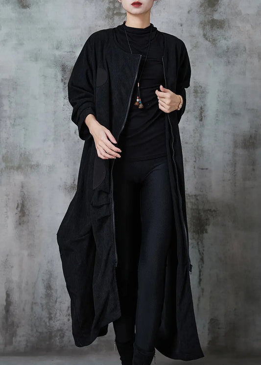Natural Black Asymmetrical Zippered Cotton Coats Spring JK1027