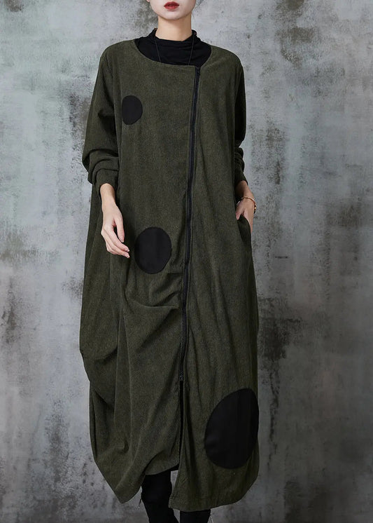 Blackish Green Dot Cotton Trench Coat Asymmetrical Spring JK1051