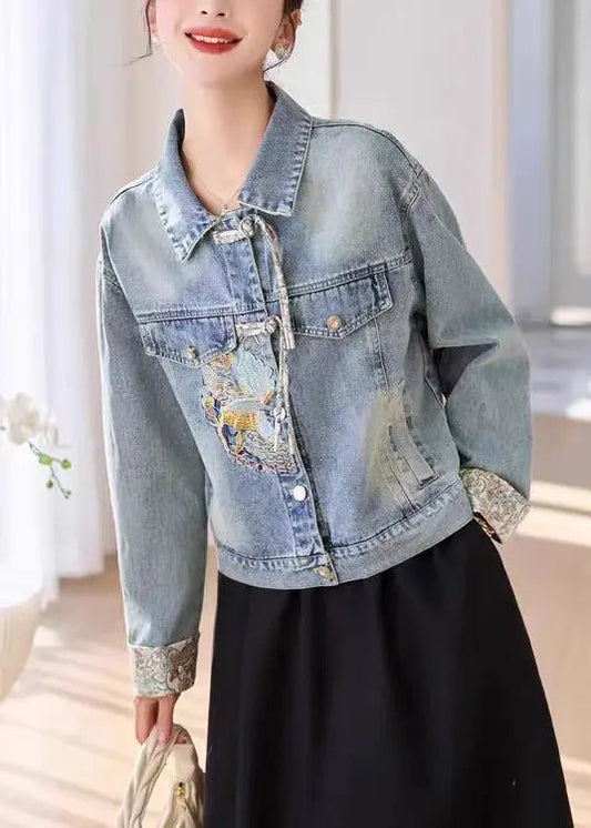French Blue Embroidered Button Denim Coats Spring CG1031