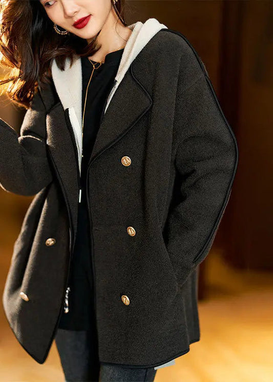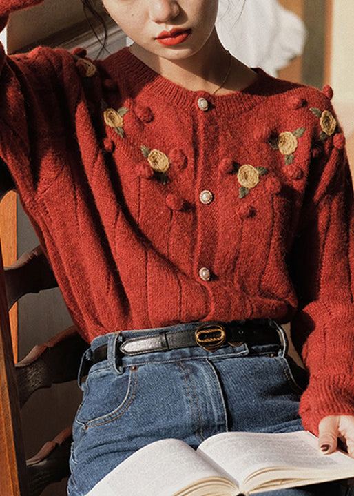 Women Wine Red Button Patchwork Cozy Knit Coat Long Sleeve TU048