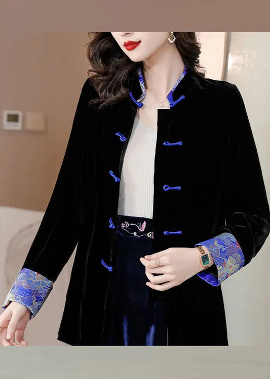 Loose Black Waistcoat And Blue Blouses Patchwork Two Pieces Set Fall TU007