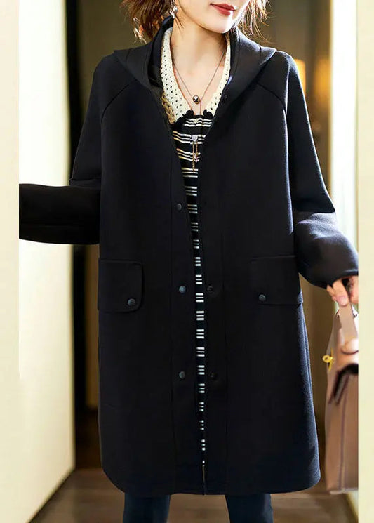 Women Black O Neck Button Patchwork Knit Cardigan Fall TU040